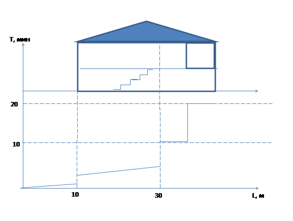 График зависимости времени нарушителя на объекте от проделанного им пути