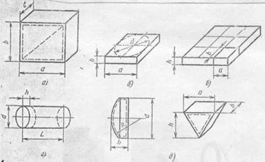 При заказе меньшего числа заготовок их изготовляют в виде плитки, штабиков с размерами, кратными размерам единичной заготовки (см. рис.1.1, а-г).