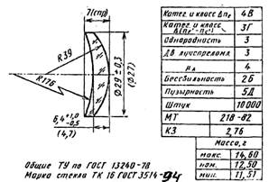 Рис.1.2 Образец, оформления технических условии на заготовку линзы