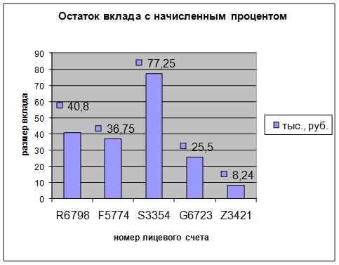 · графическое представление данных на листе «Остаток вклада»;
