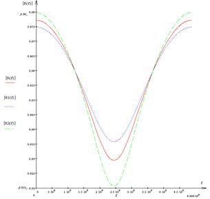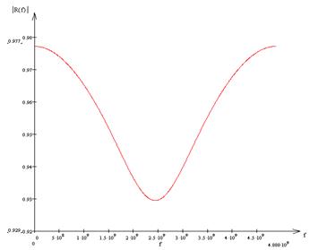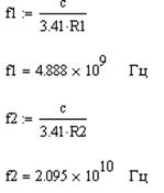 Характерные размеры подводящего волновода: (r1/R1) = 5/18 (мм);