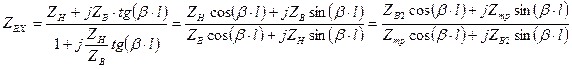 Отсюда следует, что входное сопротивление нагруженного отрезка волновода имеет вид: