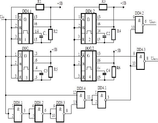 Рис.2.4. Структурная схема опознавателя элементарных ШИМ – сигналов для троичного канала