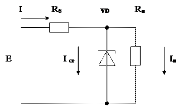 3.2. Вычисляем величину балластного сопротивления Rб . Для чего чертим схему параметрического стабилизатора (Рисунок. 3.1) и записываем уравнение по второму закону Кирхгофа