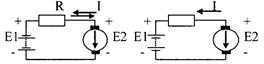 В схеме, представленной на рис. 5.1 ток протекает по нагрузке с лева направо (если выполняется неравенство Е1>Е2 или существует иная причина). Тогда для схемы справедливы уравнения