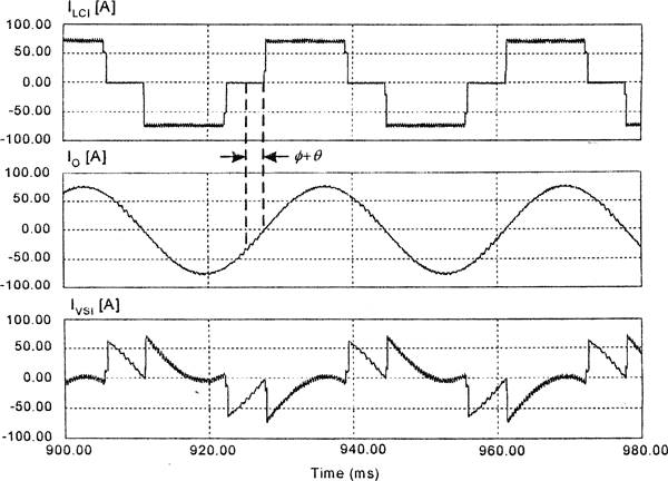 На рисунке 7 приведены кривые токов на выходе системы, поясняющие принцип формирования синусоидального тока нагрузки.