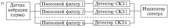 Рис. 6г. Структура основных видов приборов для измерения и анализа сигналов вибрации и шума. СКЗ - среднеквадратичное значение