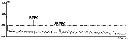 Рис. 9б. Спектры огибающей высокочастотной вибрации подшипникового узла с износом наружного кольца. BPFO - частота перекатывания тел качения по наружному кольцу.