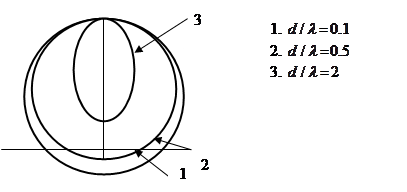 т.е. диаграмма направленности асимметричного приёмника градиента давления – кардиоида. В общем случае диаграмма направленности асимметричного приёмника градиента давления зависит от расстояния и частоты звуковых колебаний (см. рис. 6).