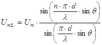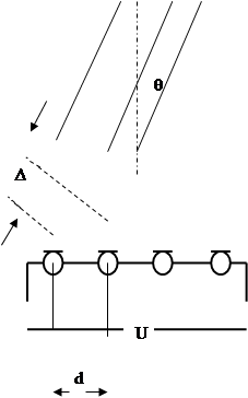 .Будем считать, что плоская звуковая волна падает под углом θ к оси системы. Тогда между напряжениями соседних микрофонов будет иметь место сдвиг по фазе