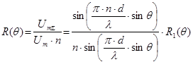 - характеристика направленности одного микрофона. Из выражения (5) следует, что диаграмма направленности может иметь несколько лепестков. Направления , для которых характеристика направленности принимает нулевые значения, можно определить из условия: