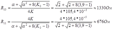 Значення резисторів R12 і R13 визначимо за допомогою систем рівнянь: