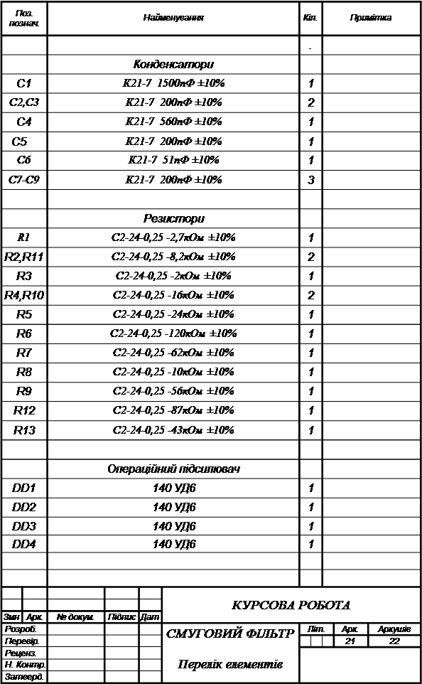 Курсовая работа: Смуговий активний фільтр