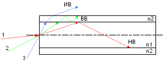 НВ – Направляемая волна, переносящая световую энергию по сердцевине ОВ. Обуславливает передачу световых сигналов по ОВ;