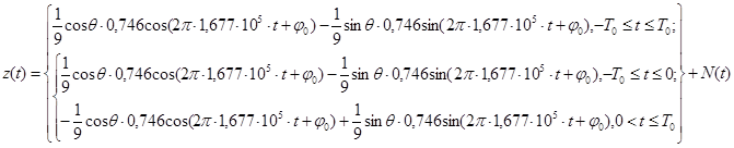 Приходящий сигнал s(t) на двух тактовых интервалах при ОФМ можно представить в зависимости от символа, передаваемого n-м элементом, так:
