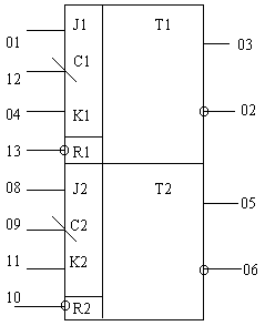 | Два JK-триггера с установкой «1» и общей установкой нуля и синхронизацией |