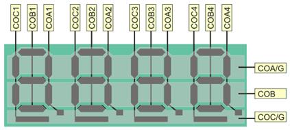 Микросхема КР1820ВГ1 [1] используется для управления 36-сегментным ЖКИ в режиме 3-уровневого мультиплексирования. Микросхема изготавливается по КМОП-технологии и выпускается в 20-выводном пластмассовом DIP-корпусе. Микросхема содержит встроенный тактовый генератор, резистивный делитель напряжения и делители частоты, с помощью которых формируются сигналы управления строками (общими электродами) и столбцами (сегментными электродами) ЖКИ в режиме 3-уровневого мультиплексирования. Одна микросхема имеет три выхода управления строками и 12 выходов управления столбцами. Предусмотрена возможность каскадирования схем, что позволяет использавать их для управления мультиплексным ЖКИ с числом сегментов более 36. Микросхема не требует никаких навесных компонентов и работает в диапазоне напряжения питания от 3 до 6 вольт. Назначение выводов микросхемы КР1820ВГ1 показано в таблице 1.