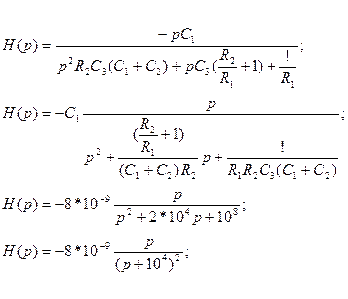 Проверка ПФ по схеме: критерием правильности ПФ является полином знаменателя 2-го порядка. Полюса расположены в левой части полуплоскости. Они отрицательны, что соответствует корням схемы.