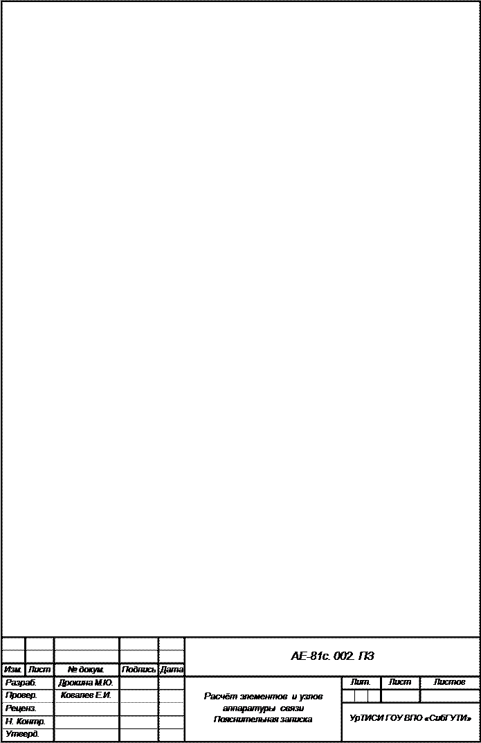 Реферат: РАСЧЕТ ЭЛЕМЕНТОВ УЗЛОВ АППАРАТУРЫ СВЯЗИ