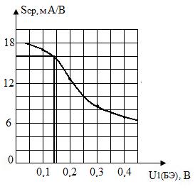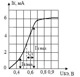 Для определения b и R бэ2 нужно выбрать рабочую точку транзистора. Для этого строим проходную характеристику транзистора I к = F ( U бэ ) – зависимость действующего значения тока в выходной цепи от входного напряжения U бэ . В свою очередь, исходными для построения проходной характеристики являются: