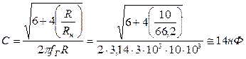 . Емкости конденсаторов С цепи обратной связи обычно выбирают в пределах 100 пФ ¸ 1 мкФ, а величину емкости разделительного конденсатора Ср