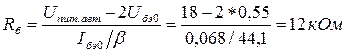 Рассчитываем RC – генератор, выполненный по схеме, представленной на рисунке 2, на биполярном транзисторе КТ301. Частота генерации fг = 3*103 Гц, напряжение питания Uпит.авт. = 18В, сопротивление нагрузки в коллекторной цепи Rк =3кОм.