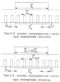 Погрешности измерения периода . При измерении периода (рис. 3б) в течение Tx (или nTx ) на СИ проходят импульсы с известным периодом следования Ттакт и поэтому (см. рис. 4б)