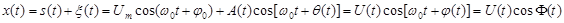 огибающая, случайная фаза и полная фаза аддитивной смеси, представляющая собой случайный нестационарный процесс.