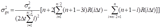 При больших n выражение (10) упрощается и, переходя к непрерывному времени, преобразуется в интегральную форму вычисления дисперсии оценки среднего значения мгновенной частоты: