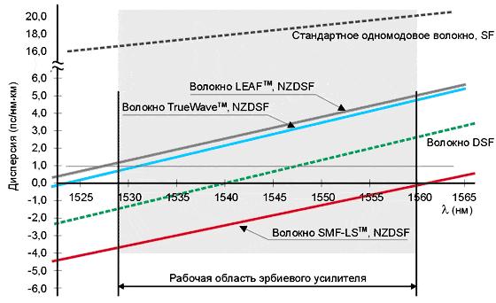 За быстродействие оптического волокна отвечает дисперсия, то есть дисперсия ограничивает быстродействие оптического волокна. Дисперсия зависит от ширины спектра излучения.
