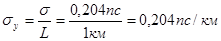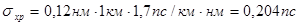Оцениваем среднеквадратичное удельное уширение импульса: