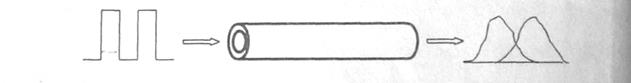 Это различие во времени прибытия импульсов в точку приема приводит к тому, что импульсы на выходе линии искажаются и накладываются друг на друга (рис .1.)