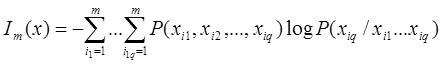 2. Среднее количество информации, приходящейся на один символ источника сообщений, при условном характере априорной вероятности: