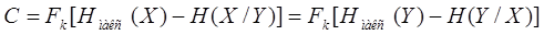 - условная энтропия множества символов Y при данном множестве X, определяющая шумовую энтропию;