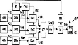 ГКИ - генератор канальных импульсов, УУ - устройство уплотнения, КФ – канальный модулятор.