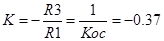 Напряжение смещения будет равно -4.5 В. Коэффициент передачи петли обратной связи будет равным: