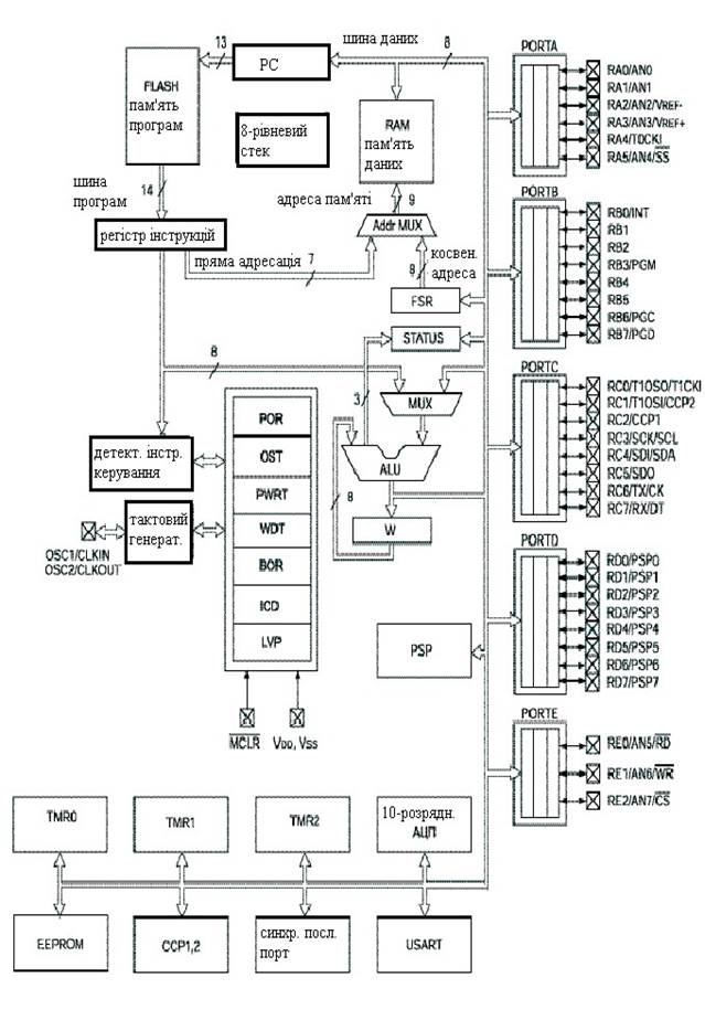 2.2 Cтруктурна схема мікроконтролера PIC16F877......................12