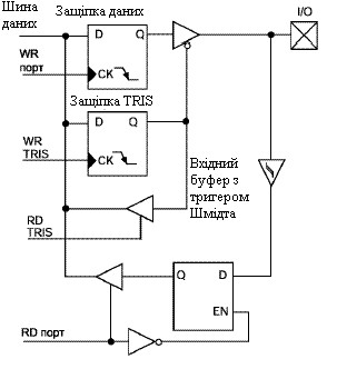 1. При виконанні операції "читання - модифікація - запис" з портом введення/виводу початкові значення прочитуються з виводів порту, а не з вихідних защіпок. Наприклад, якщо у вихідній защіпці було записана '1', а на відповідному виході низький рівень сигналу, то назад буде записано значення '0'.
