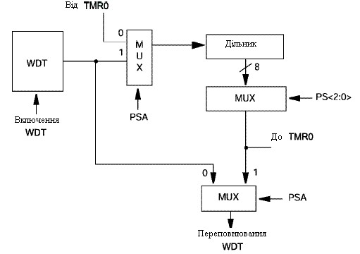 2. При виконанні запису в TMR0 (і d=1) переддільник TMR0 скидається, якщо він підключений до модуля TMR0.