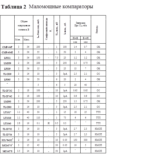 | Для схемы входного усилителя и высокоскоростных компараторов (см. таблицу 2).