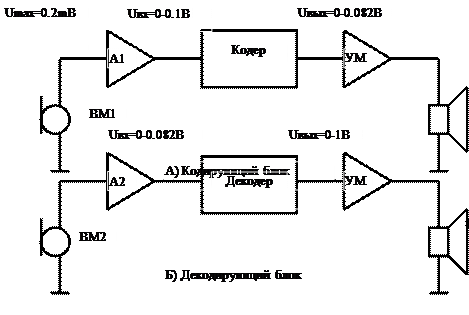Для декодерного блока рис. Микрофонный усилитель будет иметь такую же принципиальную схему, но в цепи обратной связи включают переменное сопротивление. Переменное сопротивление служит для изменения коэффициента усиления микрофонного усилителя декодера, чтобы получить уровень входных сигналов 0.082 В на входе декодера.