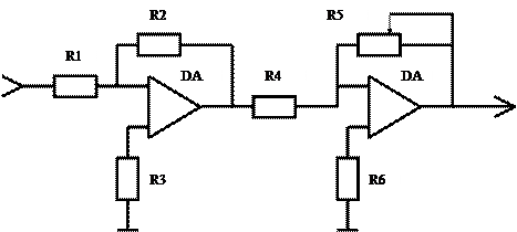 Используем схему с двумя каскадами усиления, построенных на ОУ: