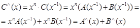Обозначим взаимный (двойственный) многочлен, у которого обратный порядок считывания символов, как: