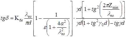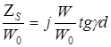 Потери мо щности в диэлектр ике на СВЧ характер из уются угл ом д иэлект р ических п отерь ( d ), тан генс котор ого р авен отноше нию мним ой и дей ствите льн ой составля ющих :