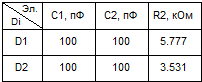 ) каждого D-элемента по значениям нормированных емкостей LC-прототипа