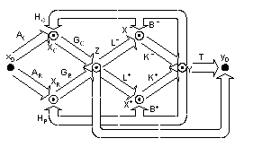 Как видно из сигнального графа, анализируемая модель состоит из трех основных частей. Первая часть (компоненты вектора
