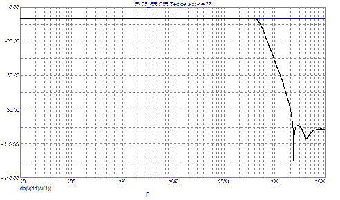 Рис. 14. Прецизионный «бездрейфовый» Чебышевский ФНЧ 5-го порядка с расширенным диапазоном рабочих частот
