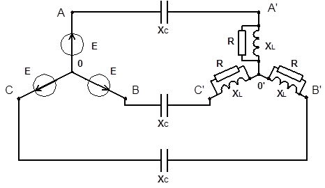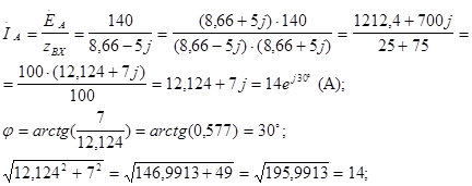 2. Cхема для расчета комплекса действующего значения фазы А :