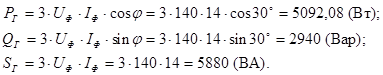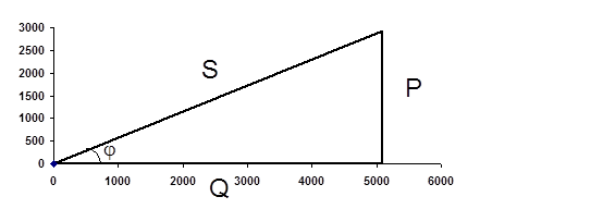 6. Определить мощности генератора (P, Q, S), построить треугольник мощностей.