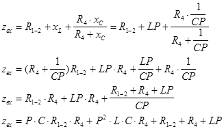 1. рассчитать угловую частоту w и сопротивления реактивных элементов схемы (L, C).